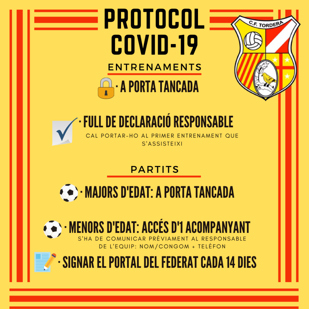 Des del Club Futbol Tordera, d’acord amb l’Ajuntament de Tordera i l’àrea d’esports, publiquem les mesures preses per a dur a terme l’activitat esportiva d’aquesta temporada.